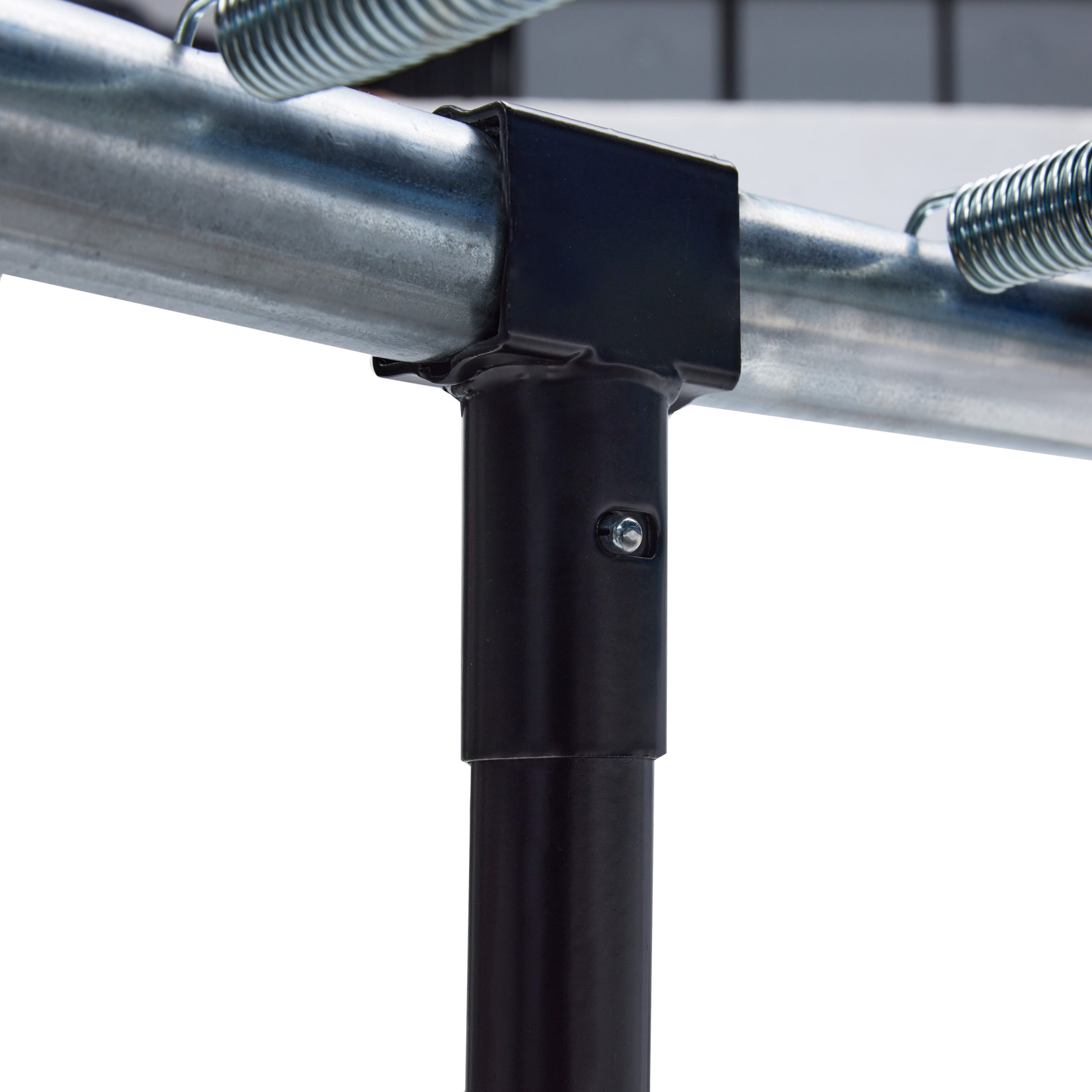 - Our outdoor trampolines have galvanized steel frames, the legs and T-connectors powder coated for long time anti-rust outside. ensuring durability, weather resistance, and rust prevention.