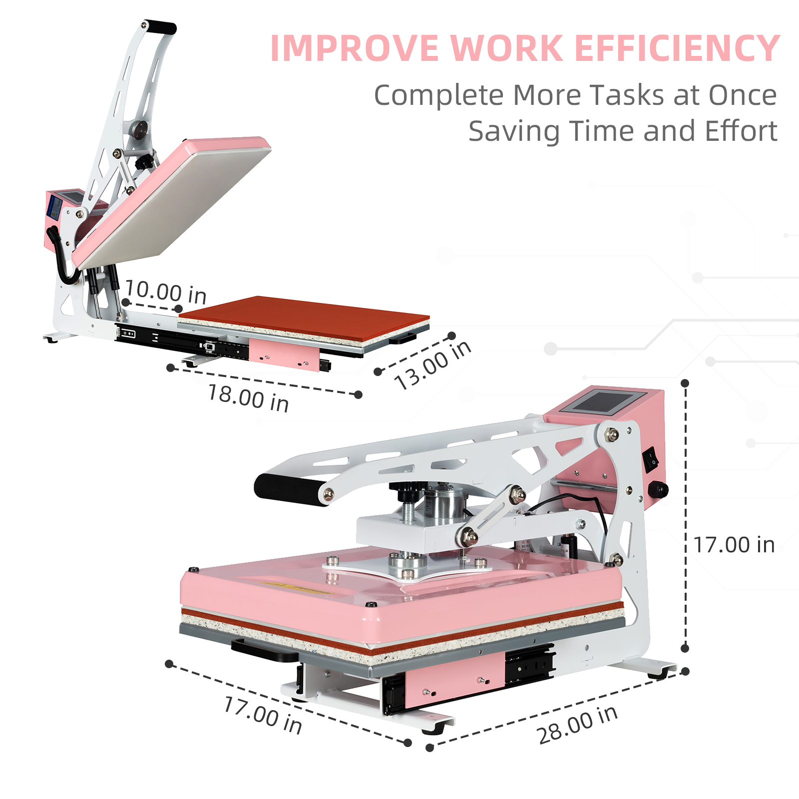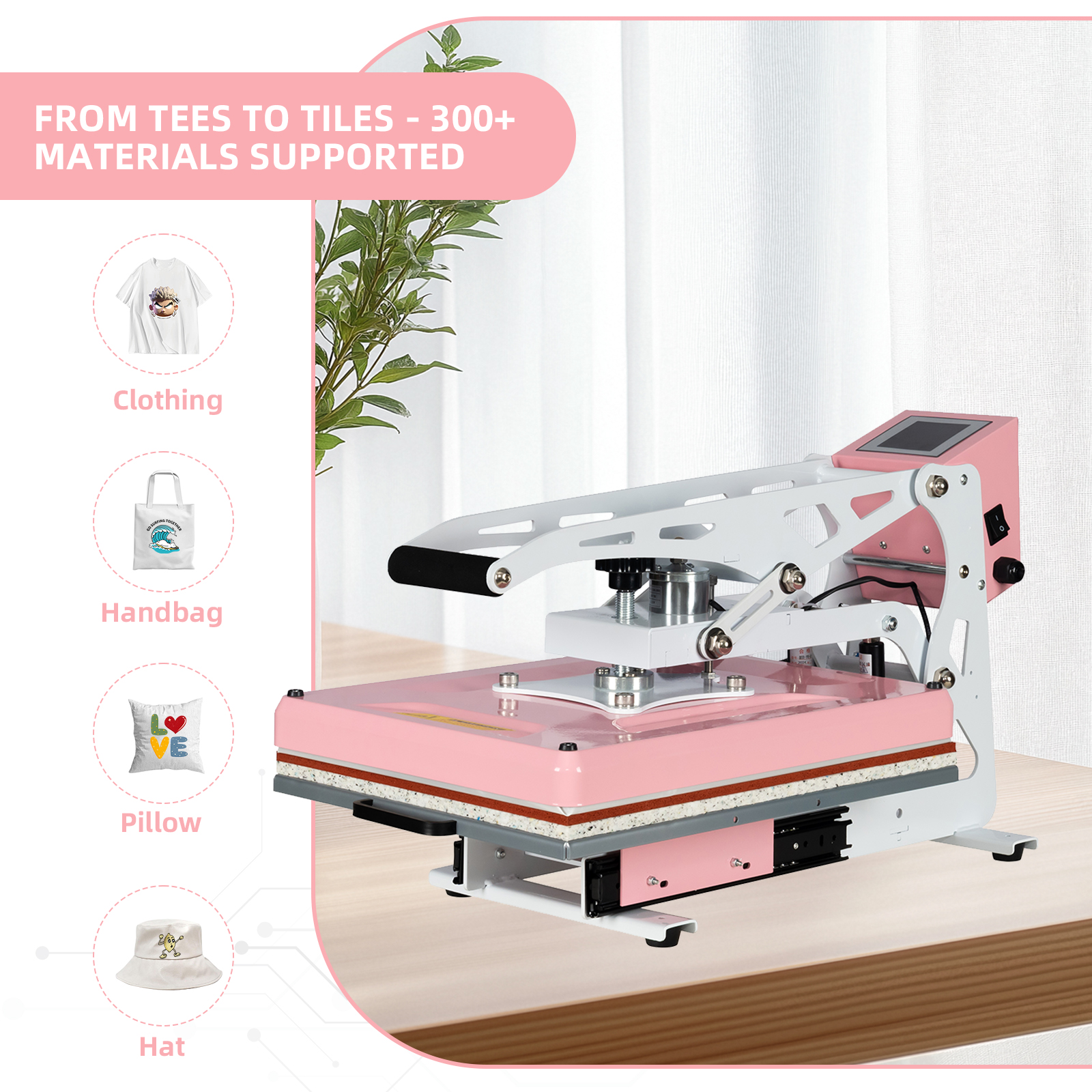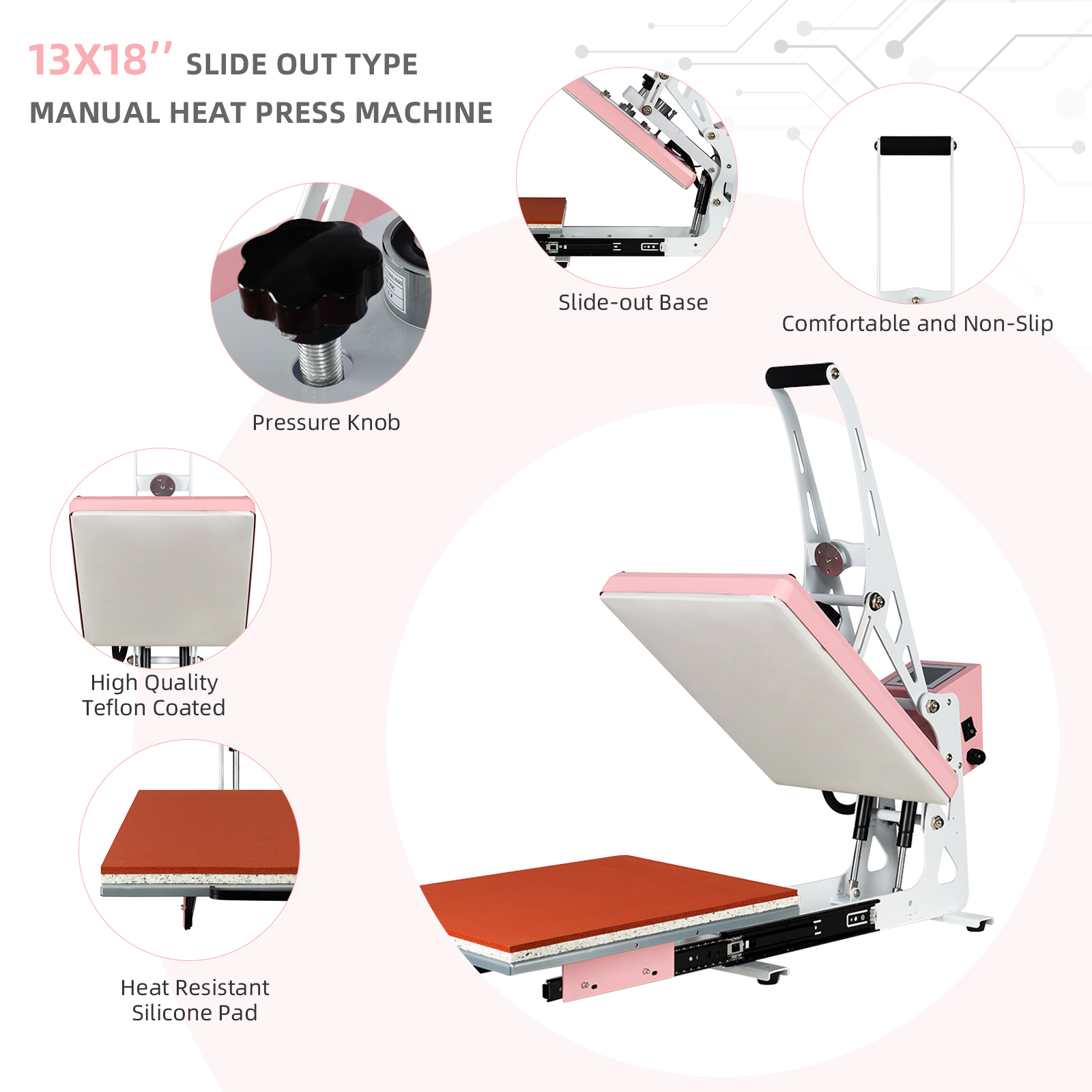 - With a voltage of 110 volts and a power of 1200 watts, it ensures easy operation. The slide-out base allows for effortless material placement, making heat transfer work more efficient.
