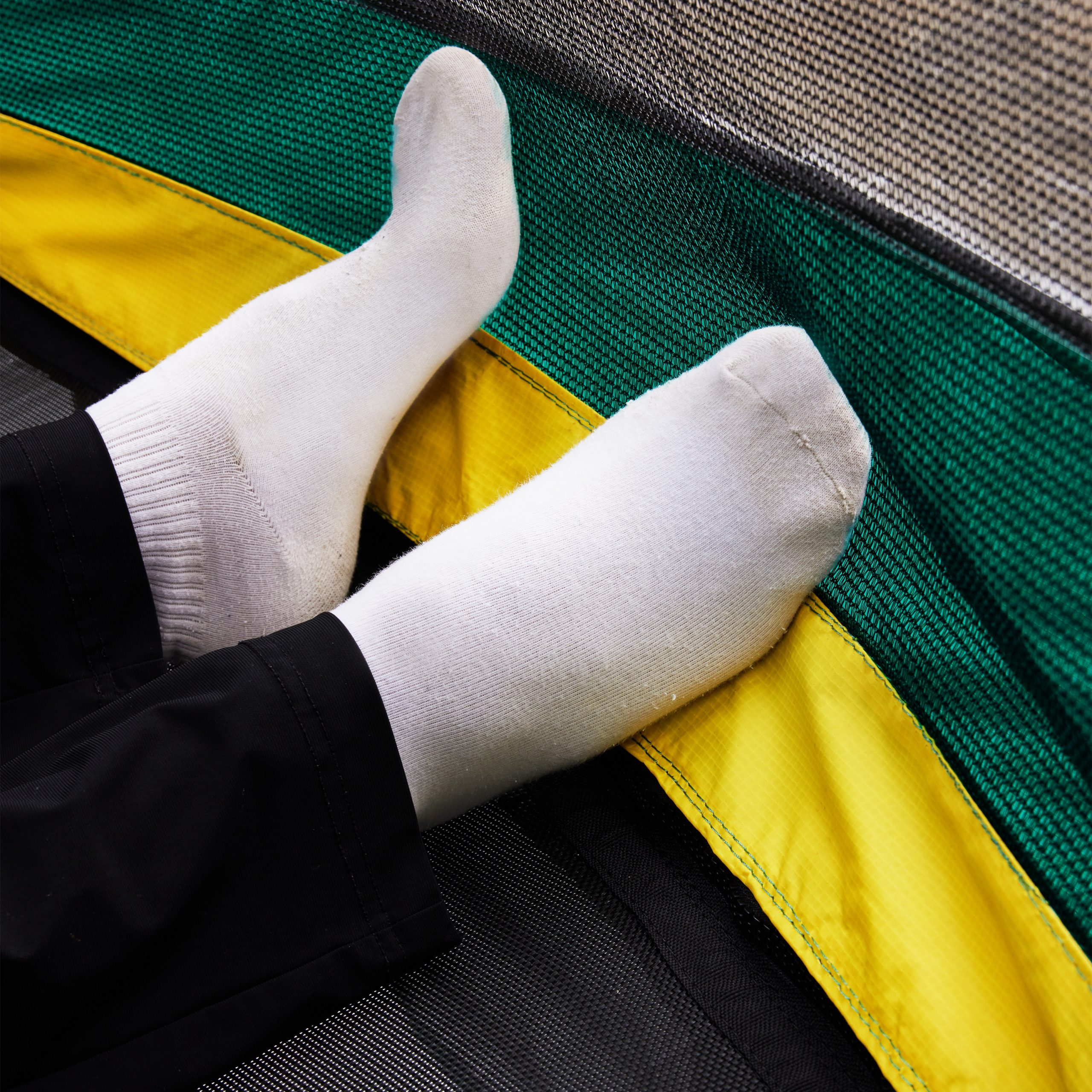 - Our outdoor trampolines have galvanized steel frames, the legs and T-connectors powder coated for long time anti-rust outside. ensuring durability, weather resistance, and rust prevention.