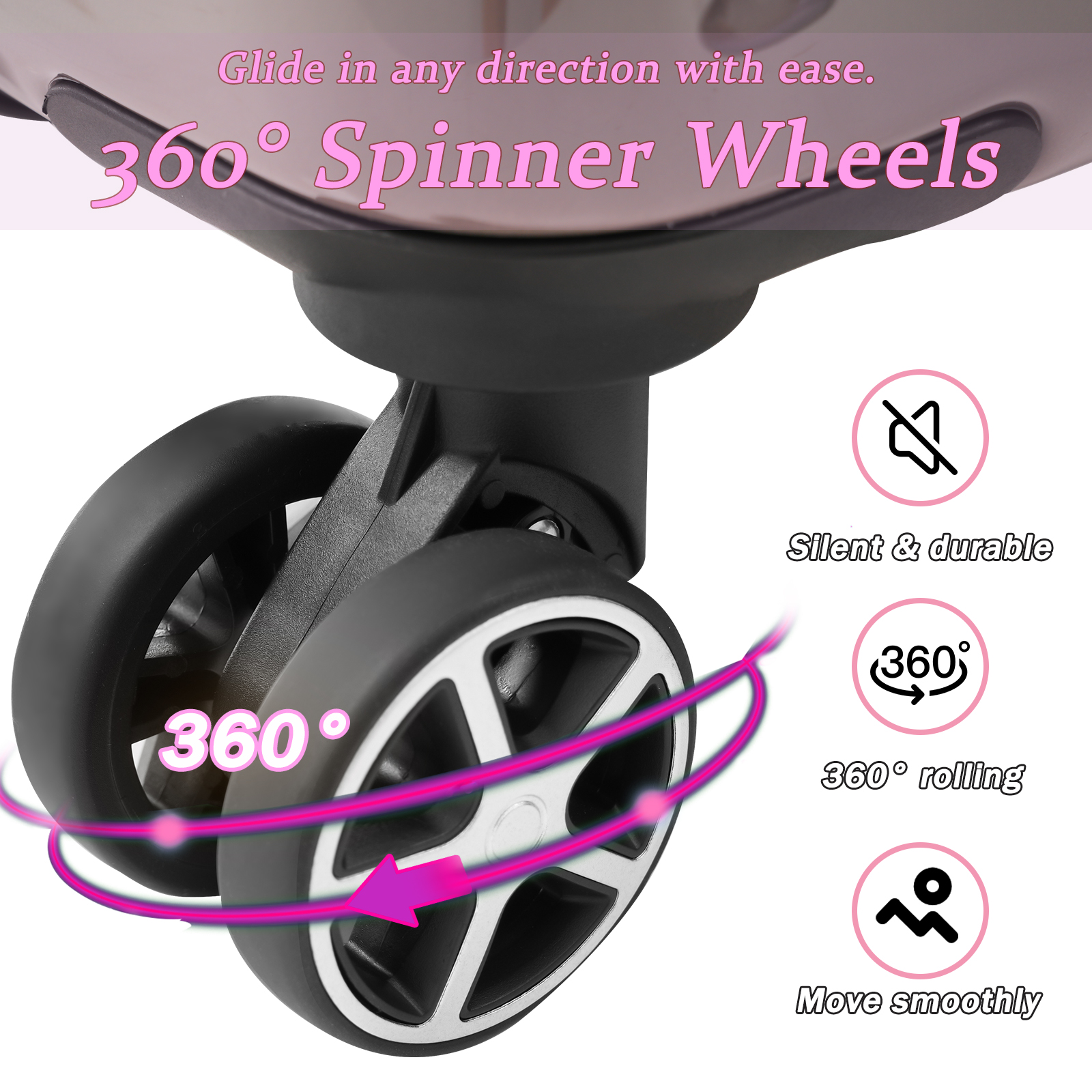 - Double Universal Wheels: Upgraded spinner wheels are quiet and easy to move, making it easy to navigate through airport halls and streets.