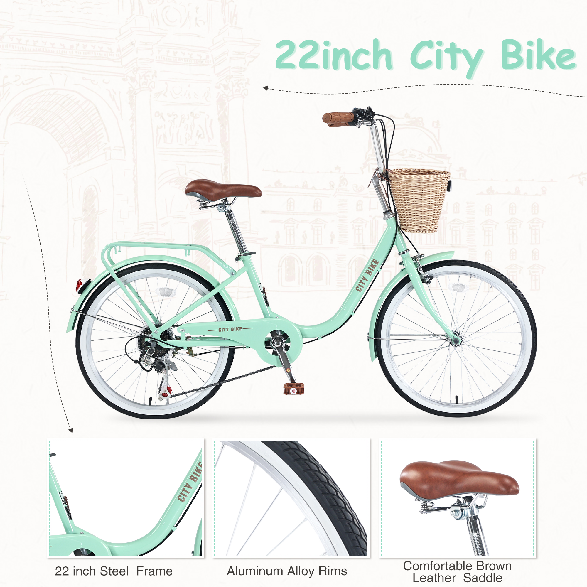 - Brown leather saddle and Comfortable grips , 22*1.75 WANDA high quality Tires provide excellent roll, and a cushioned, stable ride