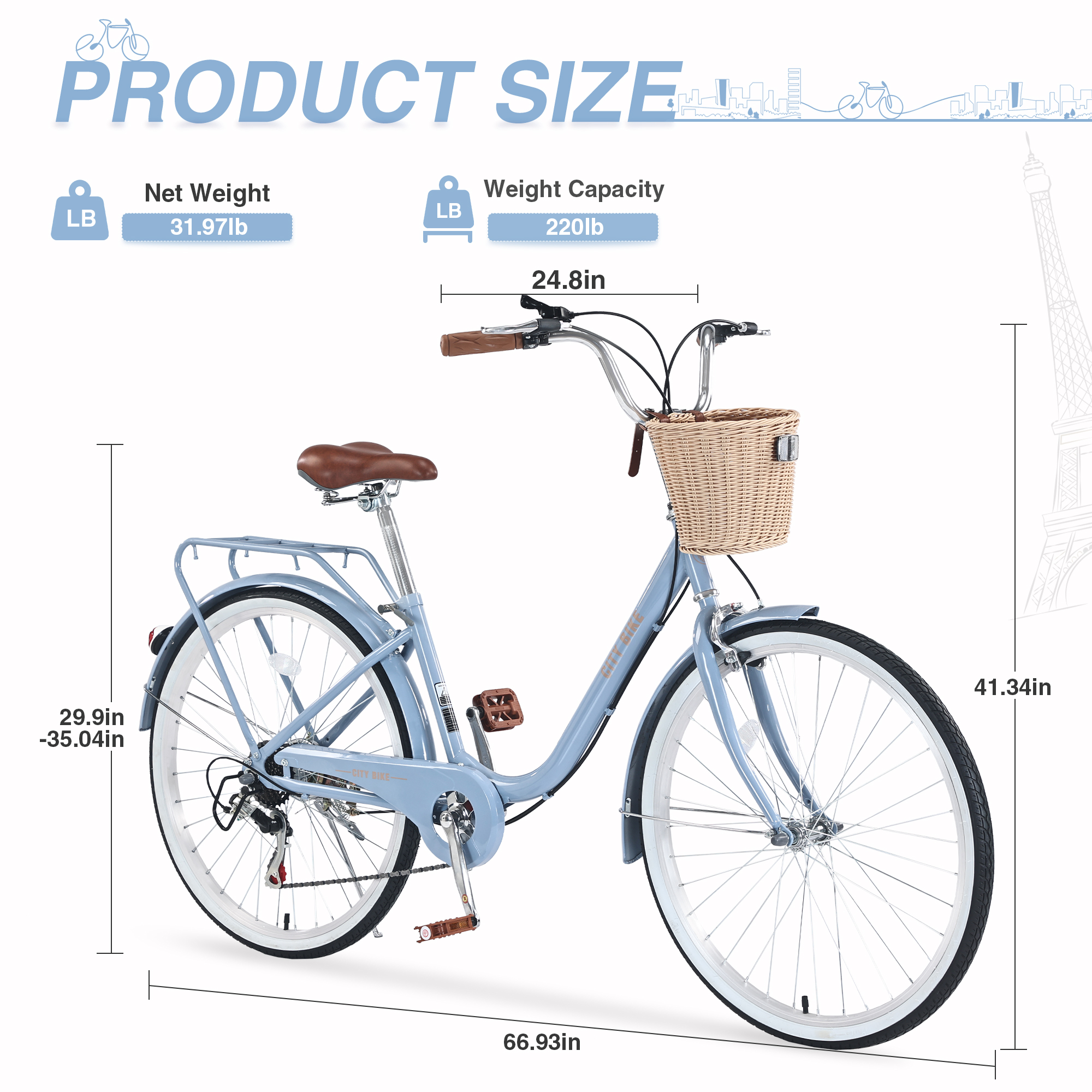 - City-style 26 inch wheel size and 15 inch steel frame Low swooping frame makes for easy step-thru entry on and off the bike.