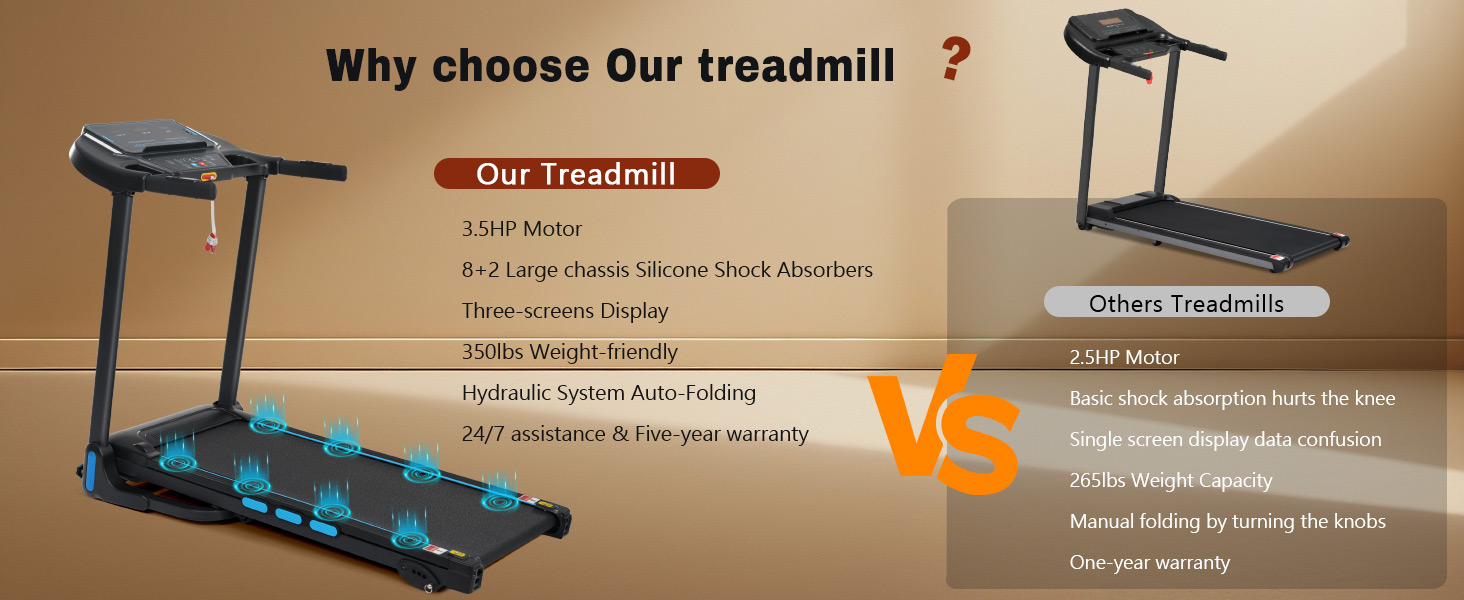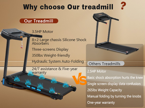 - [Quiet Motor Bear 350 lbs Weight]: Our improved super quiet motor with max 3.5HP provides efficient, reliable, and low-maintenance operation, while providing speeds of 10MPH and emitting only 40-55 dB of noise, ensuring your workouts won’t disturb your downstairs or next-doors. 350LBS Weight Capacity.