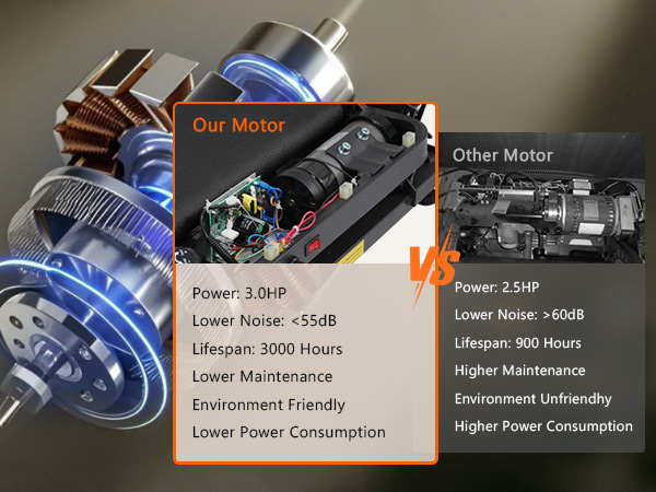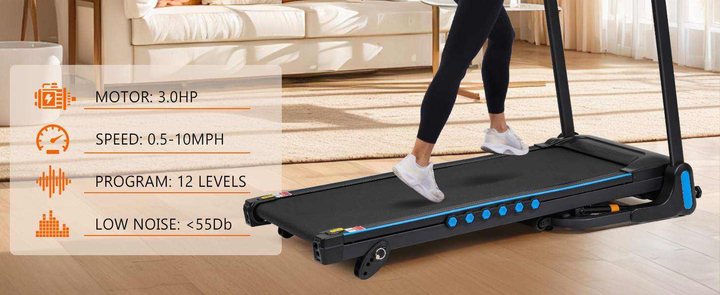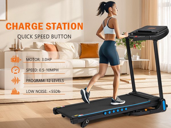 - [Quiet Motor Bear 350 lbs Weight]: Our improved super quiet motor with max 3.0 HP provides efficient, reliable, and low-maintenance operation, while providing speeds of 10MPH and emitting only 40-55 dB of noise, ensuring your workouts won’t disturb your downstairs or next-door. 350LBS Weight Capacity.