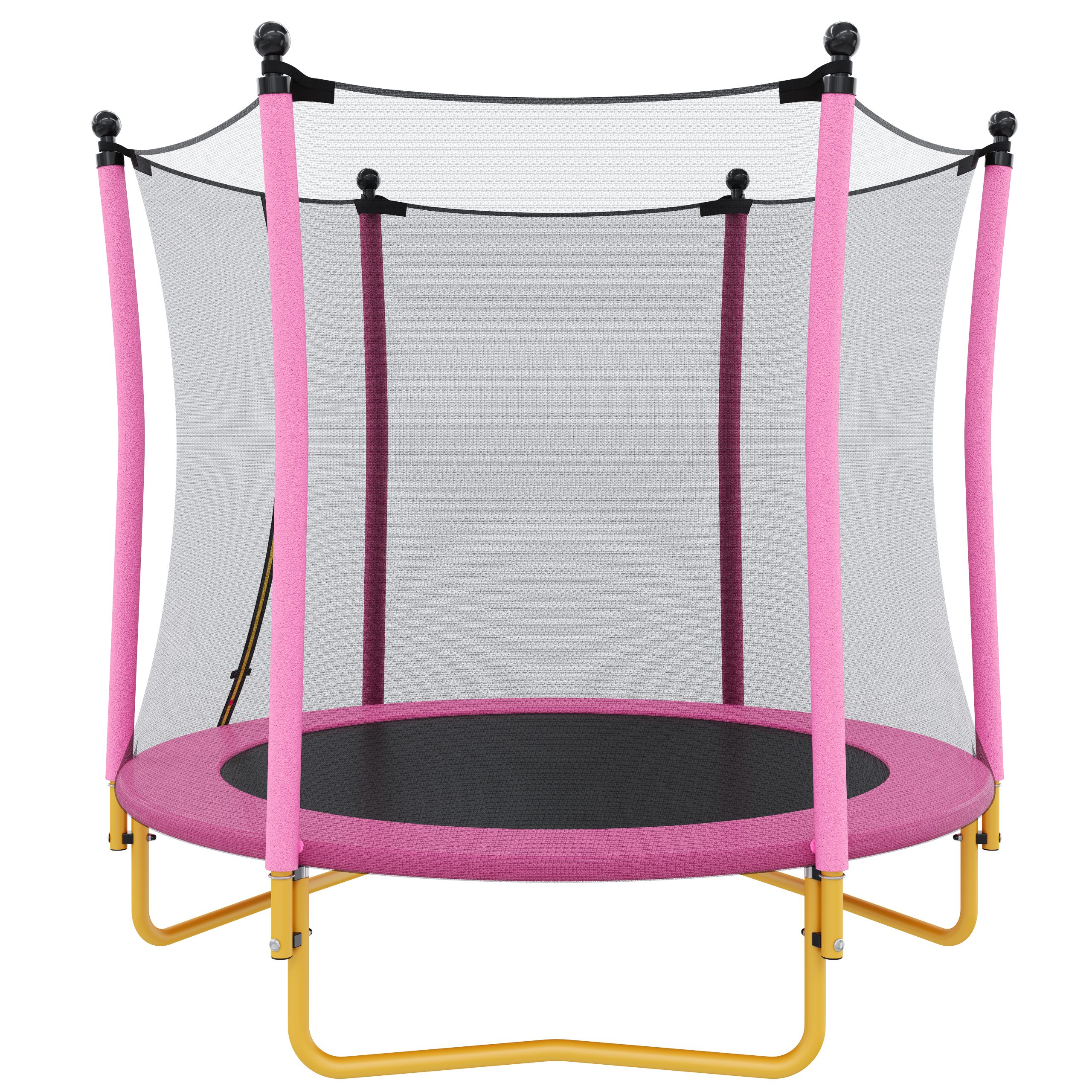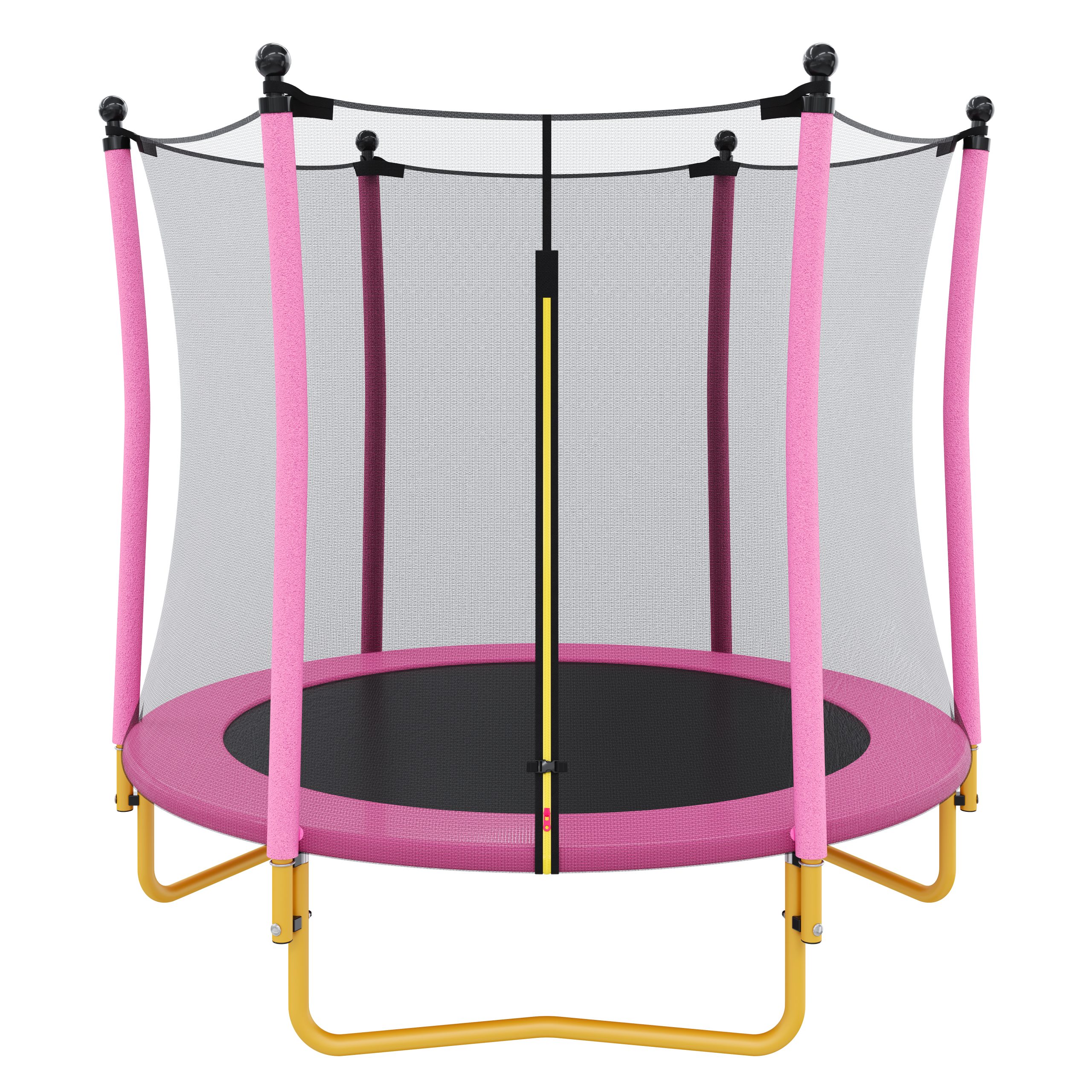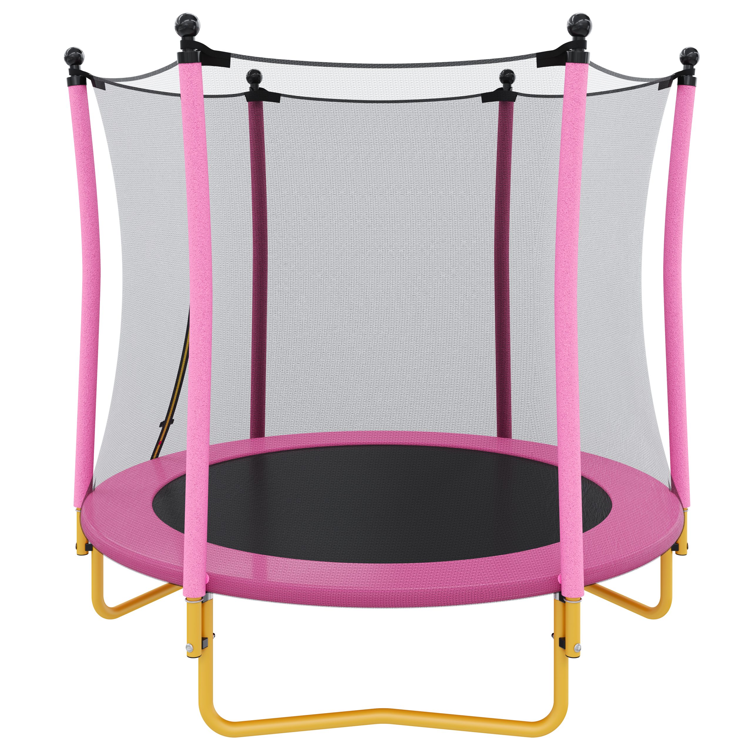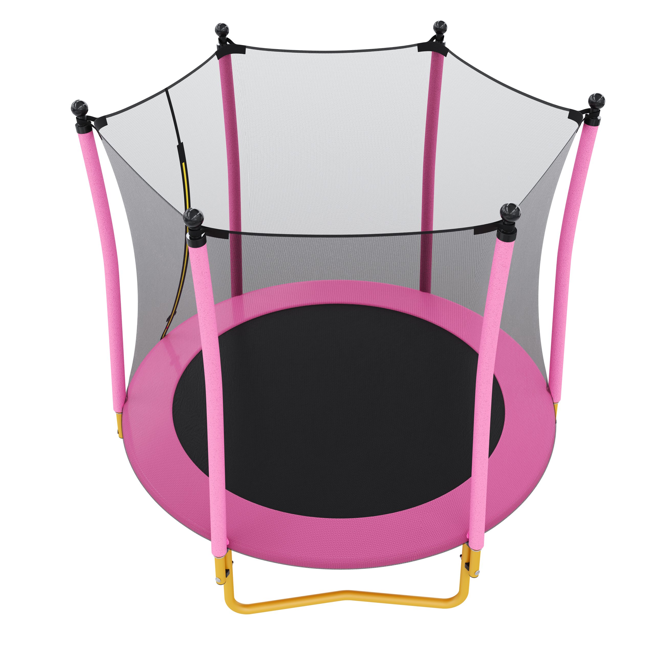 - Stable and Durable Structure: Built with three U-shaped steel legs and a heavy-duty steel frame, this 5.5ft trampoline offers excellent stability and ensures a wobble-free experience. It effectively disperses impact forces, keeping the kids trampoline firmly anchored to the ground. Whether used in a living room or backyard, this sturdy trampoline can handle hours of play without risk of tipping or shaking. The rust-resistant hardware ensures long-lasting durability, even with outdoor use.