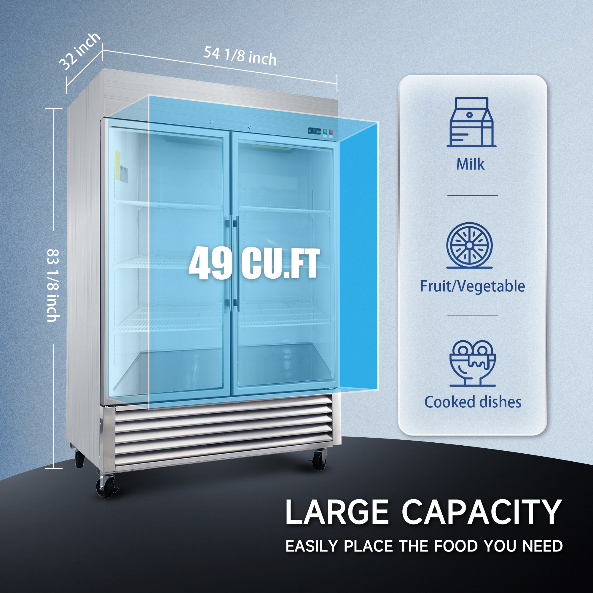 - Precise Temperature Control & Auto Defrost: The refrigerator features a CAREL digital temperature controller, allowing it to maintain a safe temperature range of 33~40℉, ensuring that food stays fresh. It also includes automatic defrosting at 6-hour intervals, 4 times a day. The dynamic fan cooling system ensures the entire interior is evenly chilled for superior preservation, preventing condensation and saving more energy.