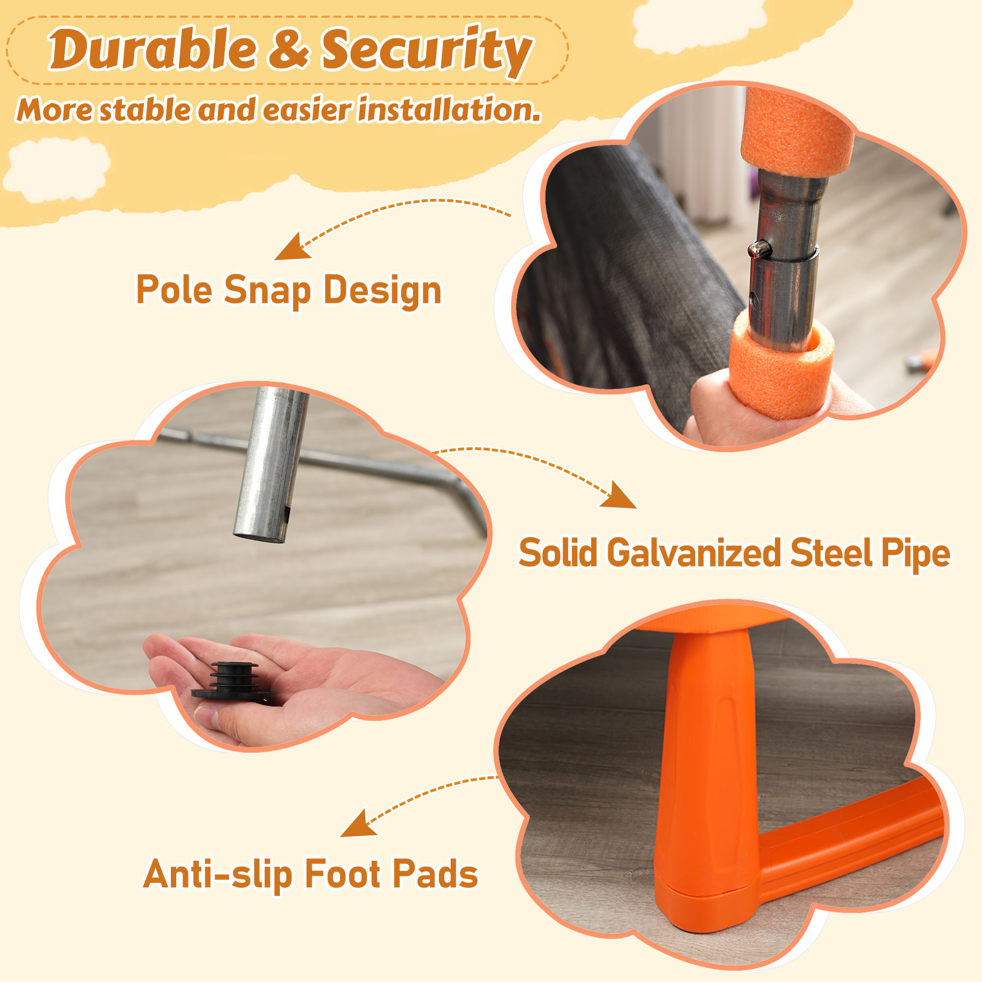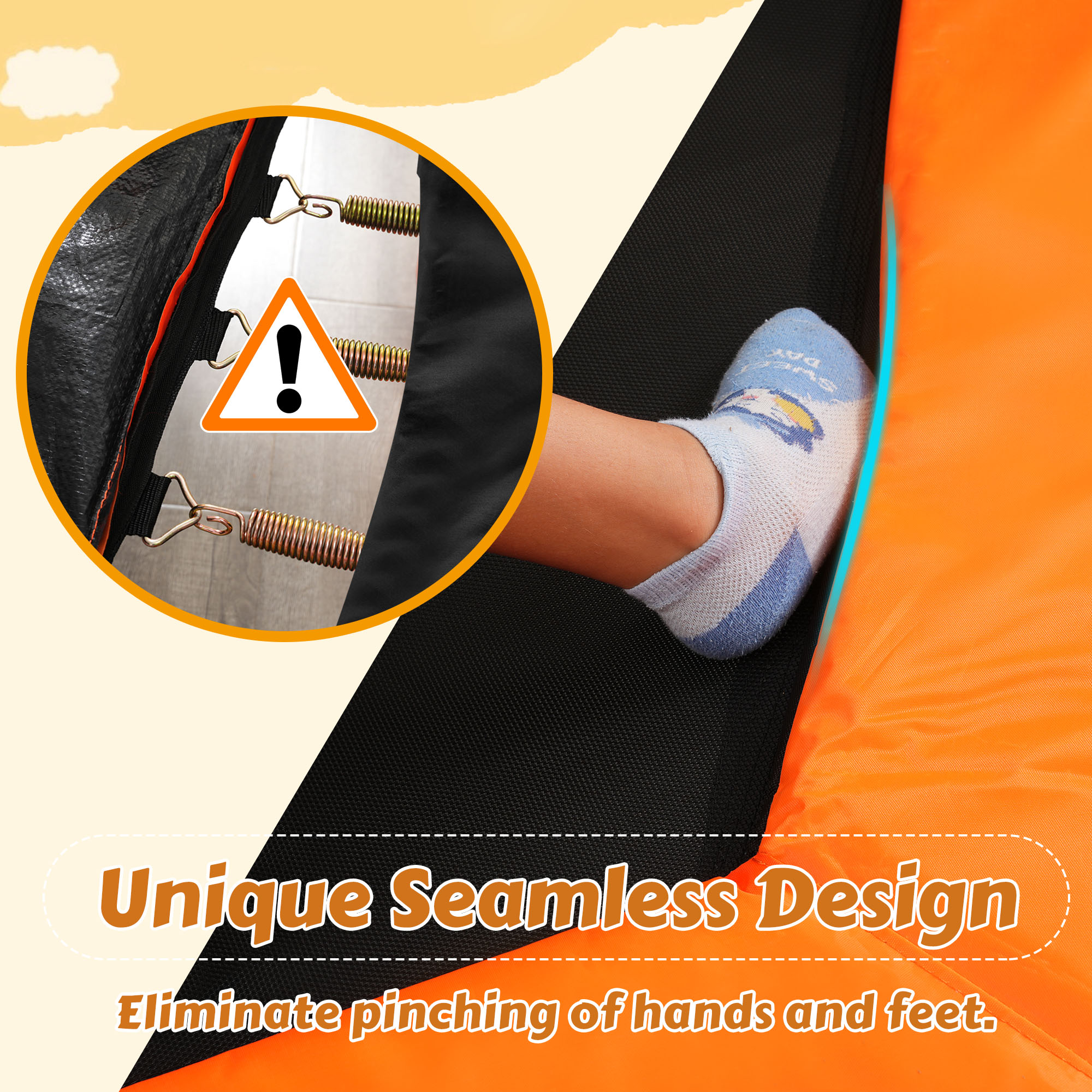 - Extra Detail Protected – The seams between the safety pad and the jumping mat of this trampoline are also pre-stitched for safety measures to maximize the space surrounding your child’s play.