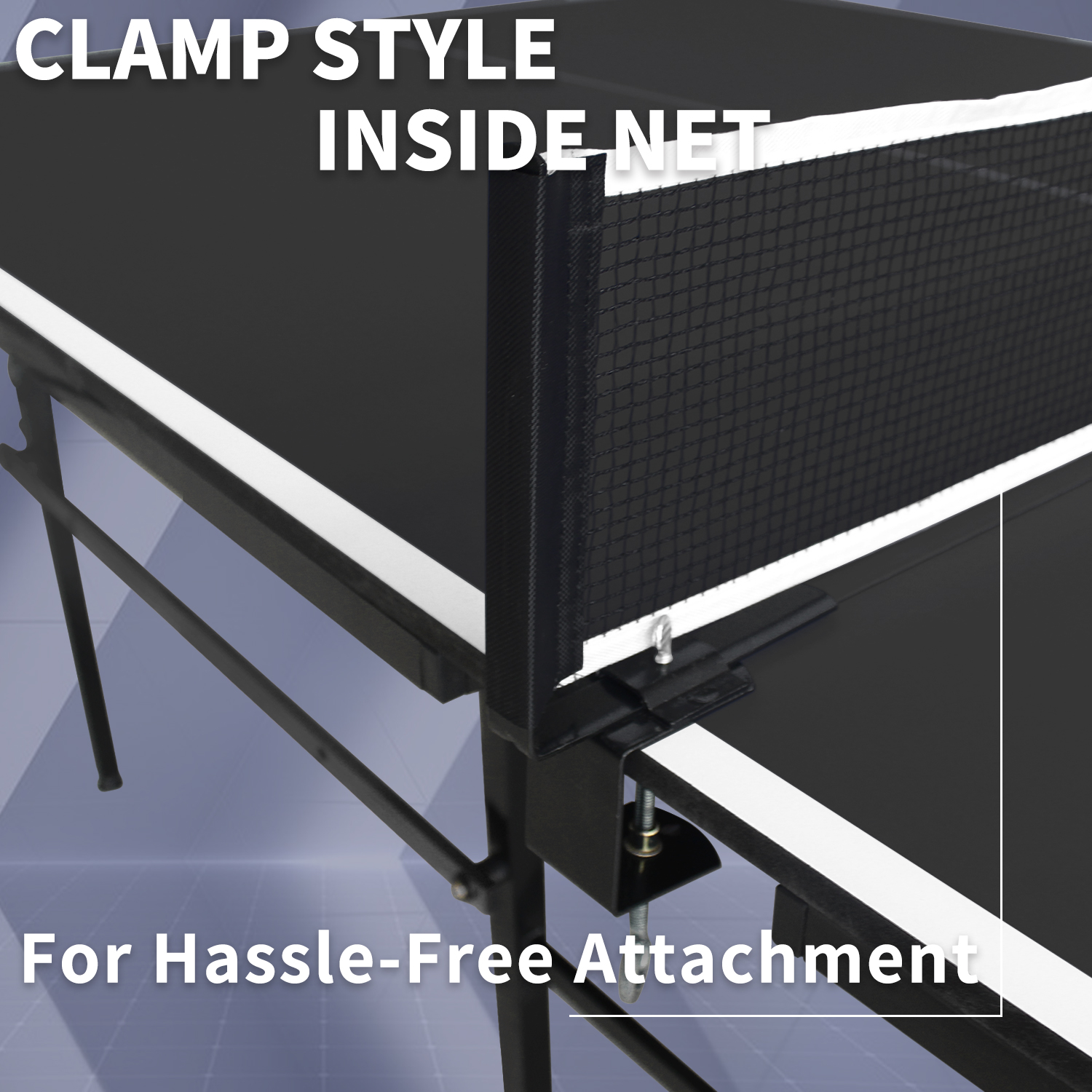 - [EASY STORAGE]-Performing table tennis table in approximately about 10 minutes out of the box,The manual provides detailed installation steps.The ping pong net set has a convenient clamp system for quickly attaching and removing from the table.