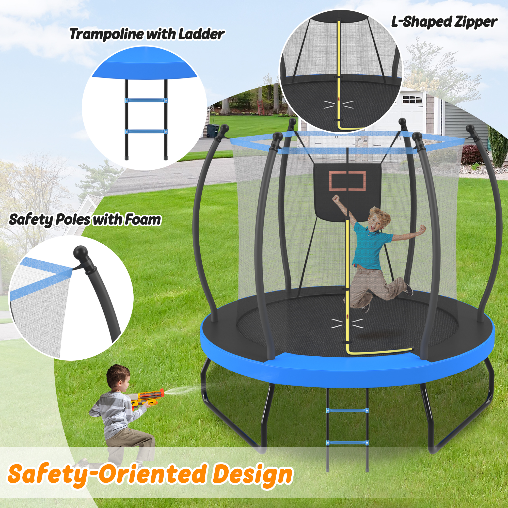 8FT Trampoline with Basketball Hoop, Enclosure net and Ladder