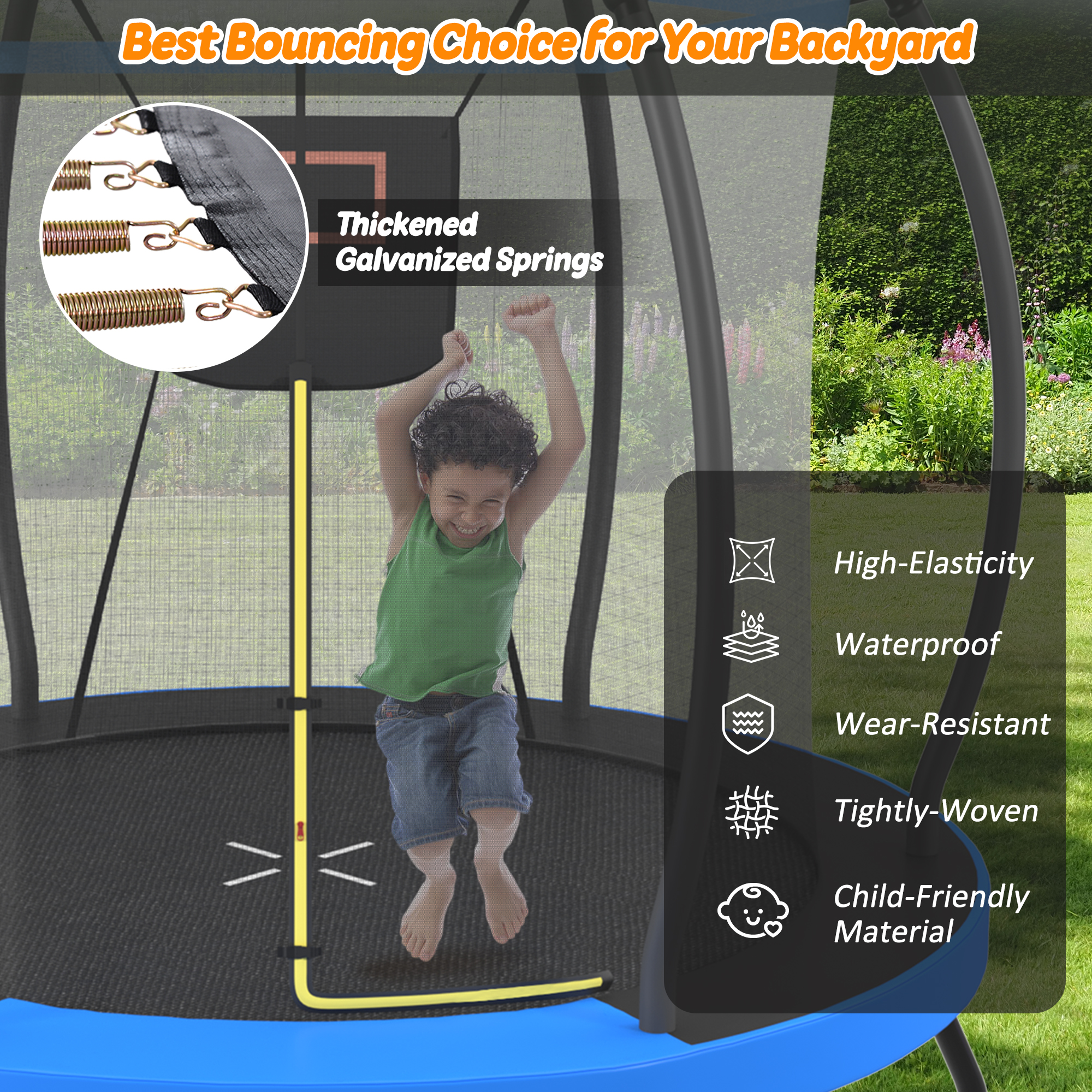 Outdoor Trampoline for Kids, Recreational Backyard Trampoline