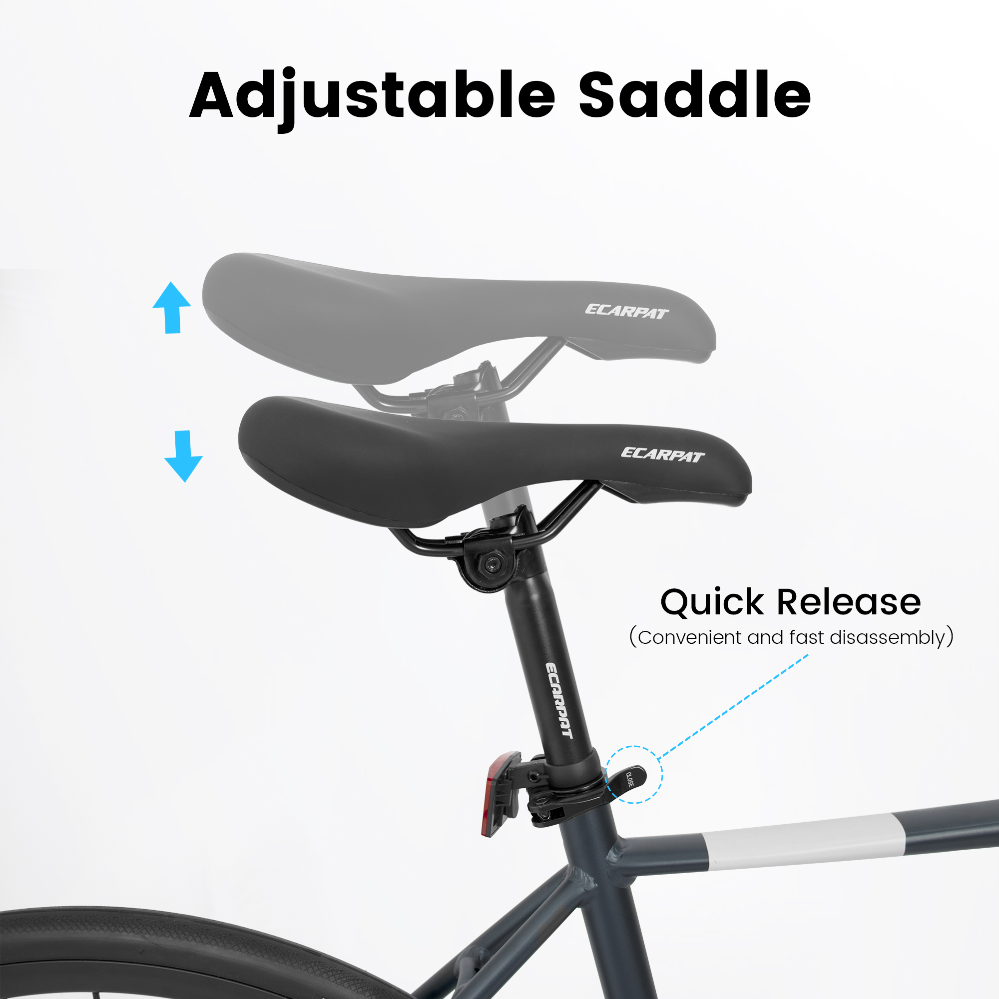 - Convenient & Practical Features: Quick-release wheel sets simplify assembly and maintenance. Reflective stickers and a side stand enhance visibility for safe night riding and make parking hassle-free. The sleek dark gray finish delivers a premium, modern look that suits any setting.