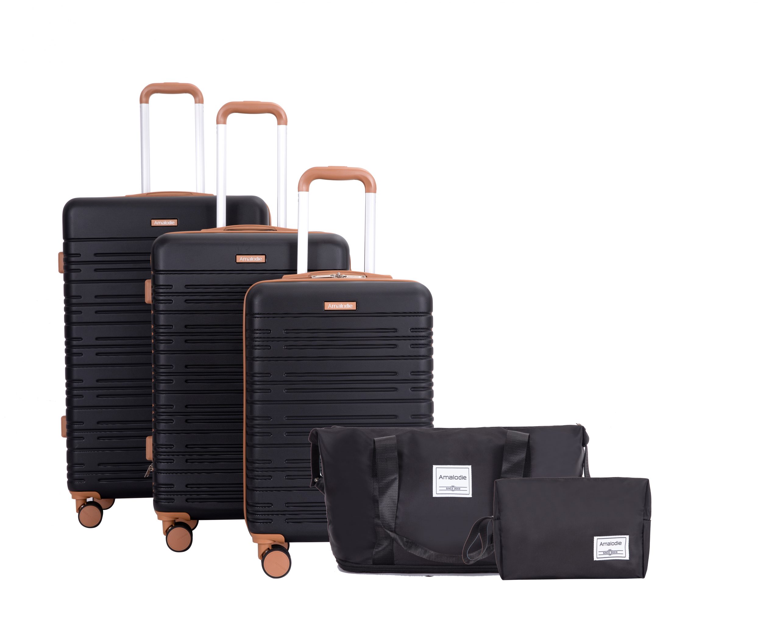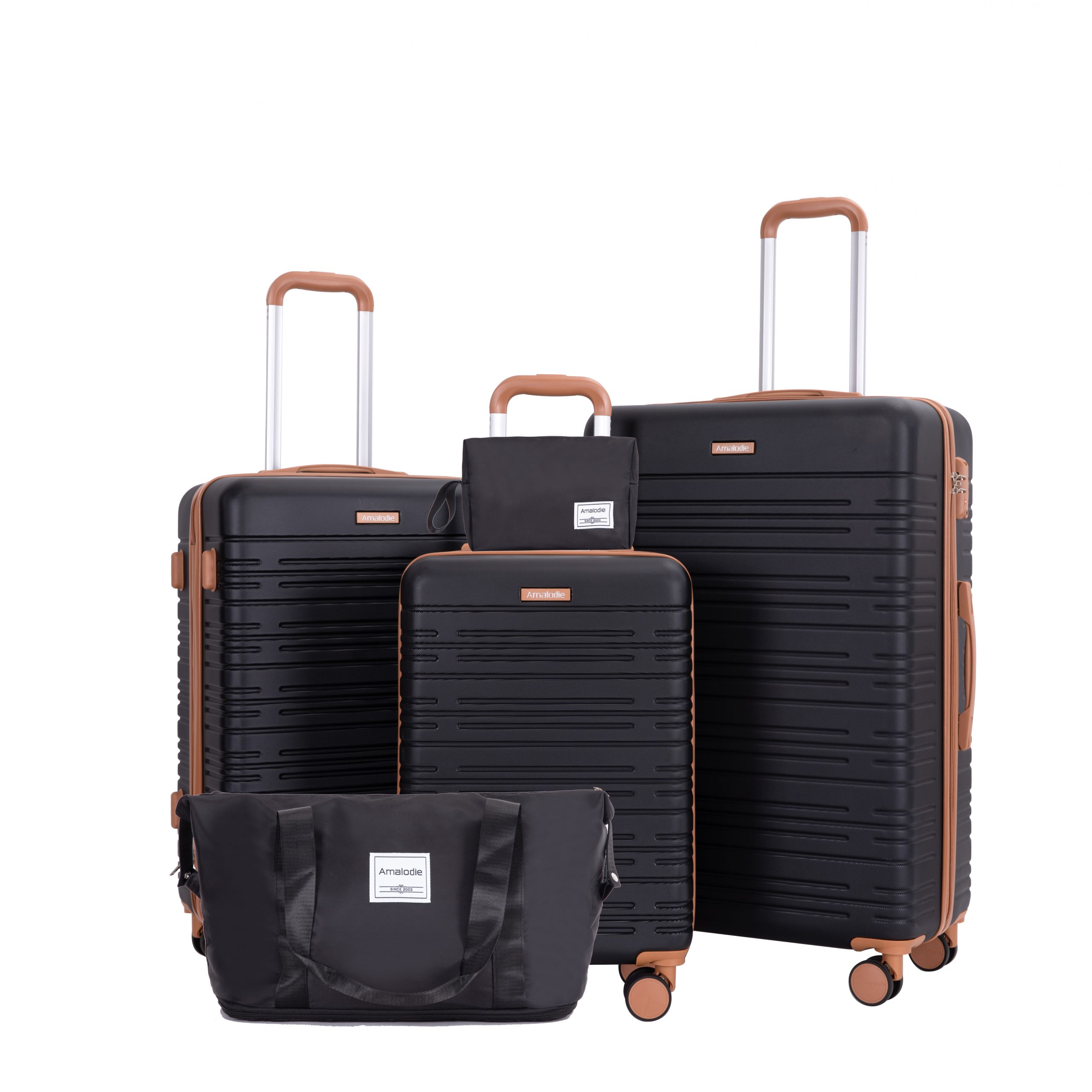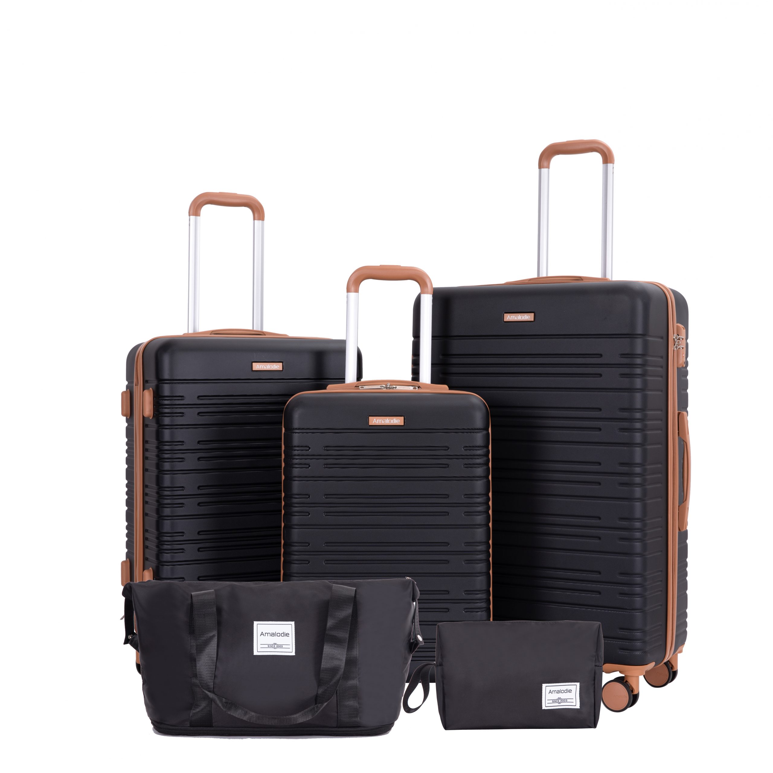 - Premium Luggage Sets: Made from brand new, extra-thick ABS material, our luggage sets are lighter and lasting-longer. Featuring a textured finish for scratch resistance, they retain their beauty throughout your travels. This 5-piece luggage set includes a 20 inch carry on luggage, a 24 inch expandable check-in suitcase, a 28-inch expandable large luggage, a travel bag and a toiletry bag