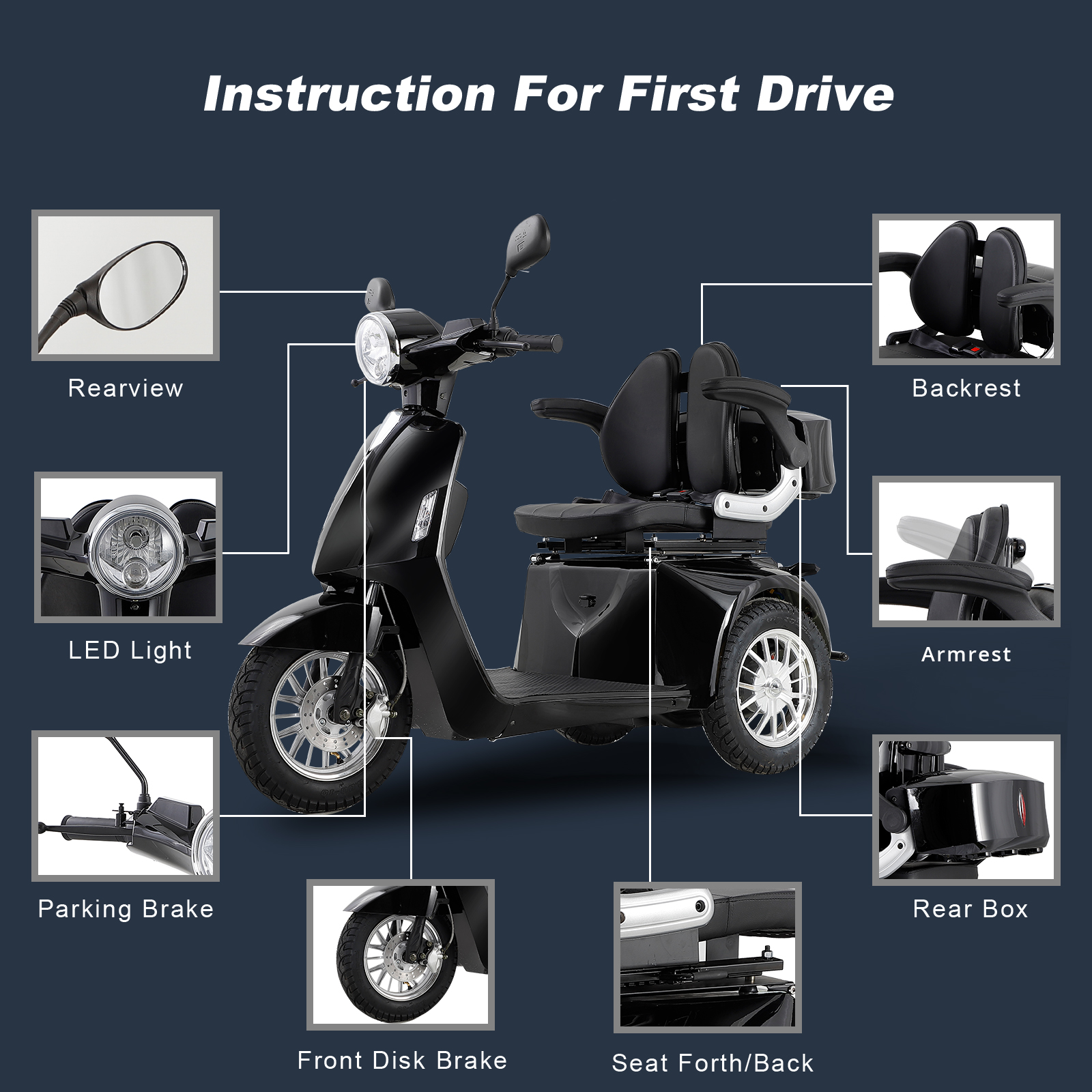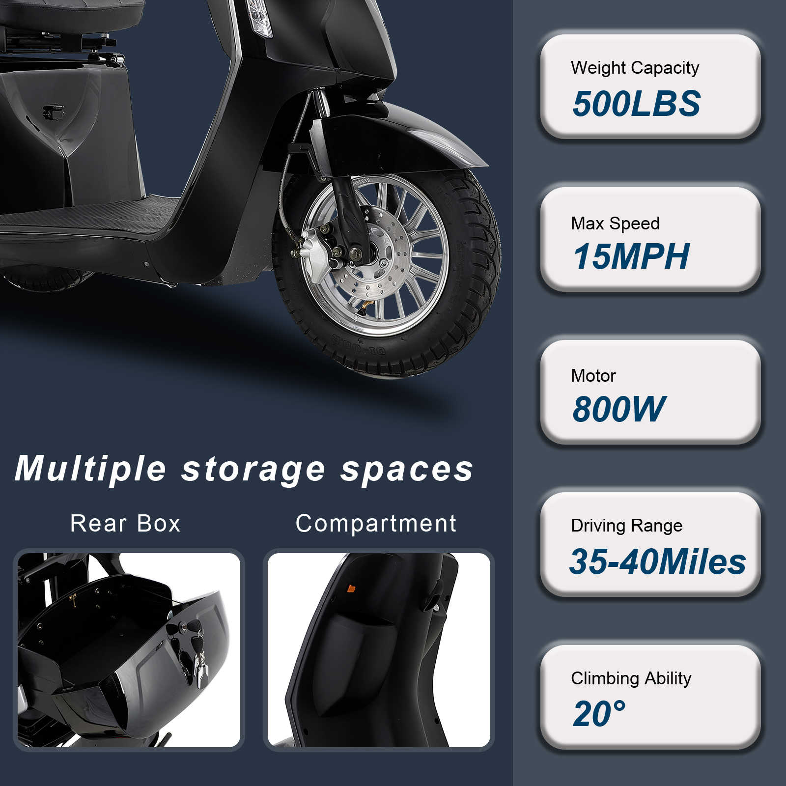 - [INTELLIGENT SYSTEMS] No need to insert the key, you can unlock and turn off the mobility scooter by remote control, the electric car also has a digital anti-theft alarm system, which can further protect you and your property safety. Intelligent system to make your trip easier and safer.
