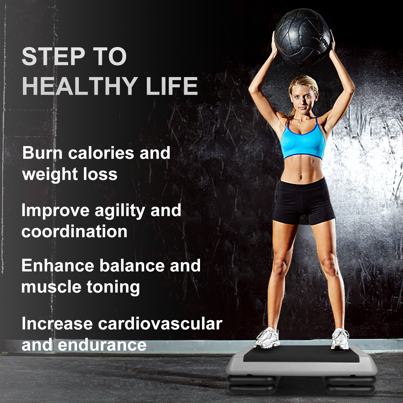 Health Club Size Steppers for Exercise with risers for adjustable Home Workout, stair steppers for exercise, and home gym
