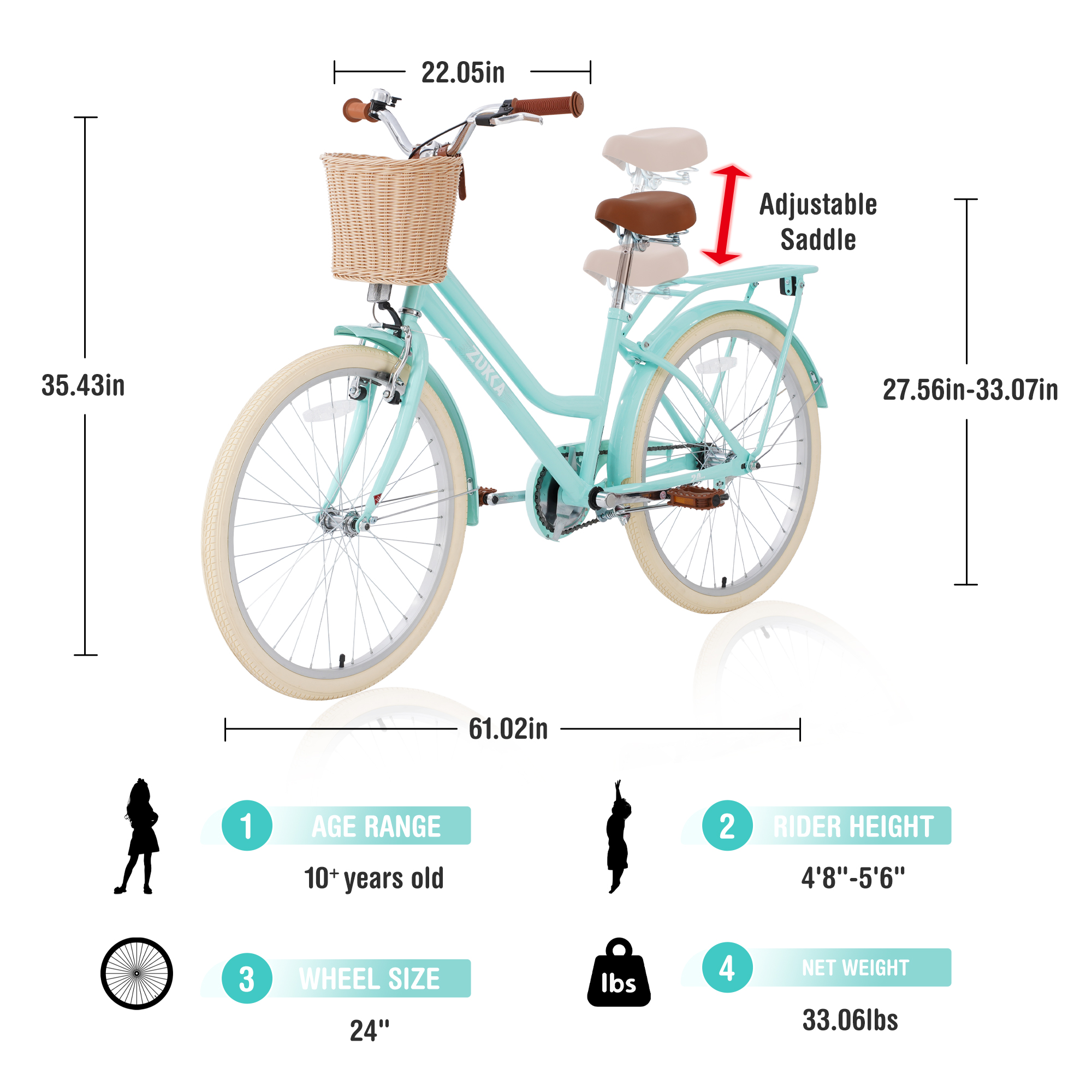 - Adjustable brown leather saddle and Comfortable grips , High quality 24*1.75 anti-skid tires provide kids more stability and comfort.