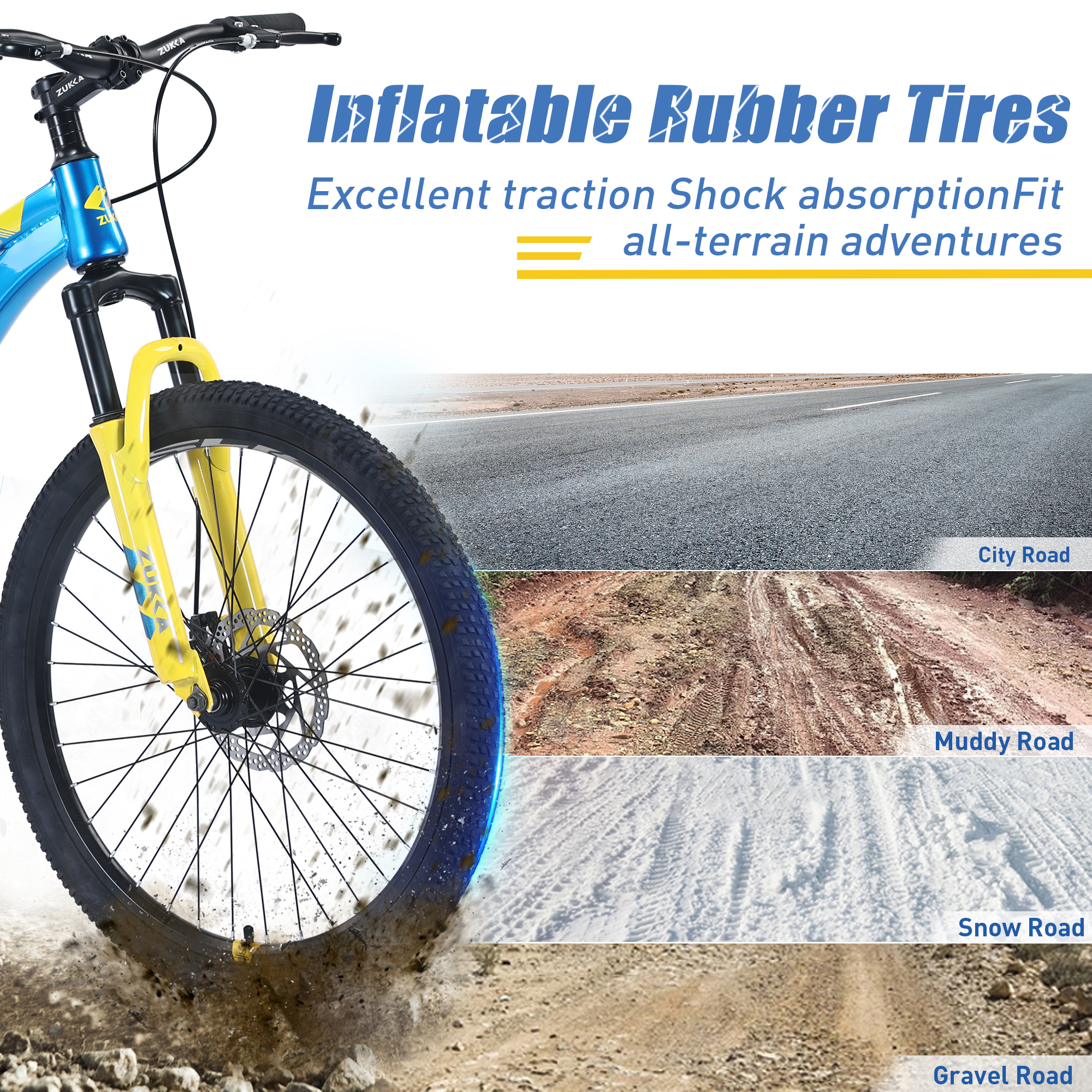 - This bike has inflatable rubber tires,and with its suspension fork providing awesome impact resistance,kids can ride over rocky and bumpy terrain more comfortably and easily.