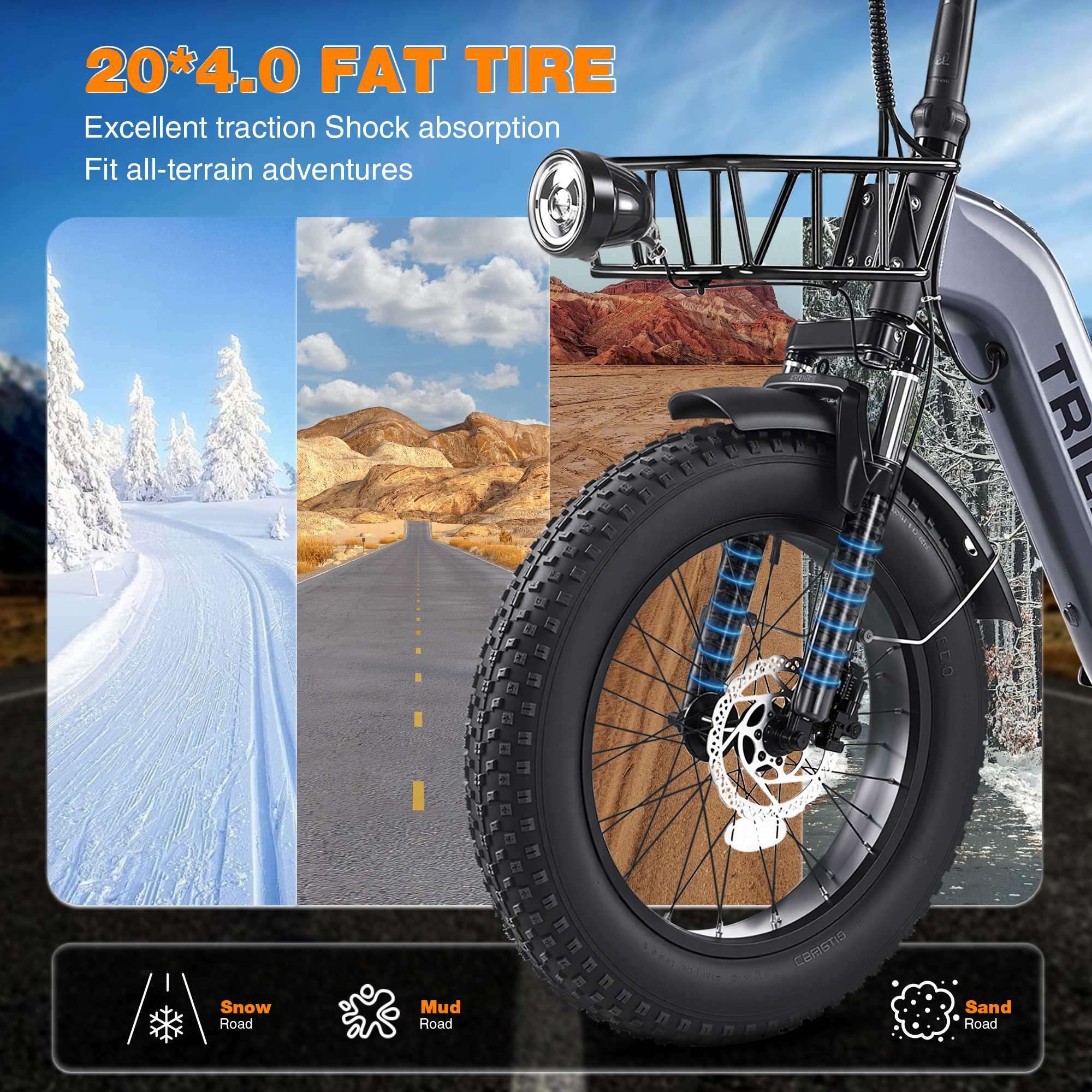 - 20×4.0 inch wide fat tires with strong grip for snow, mud and other complex roads.