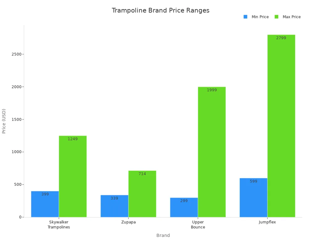 Price is important to me. I checked what other brands cost. Some trampolines are cheaper, but they might not last as long or bounce as well. Here is a look at the price ranges: